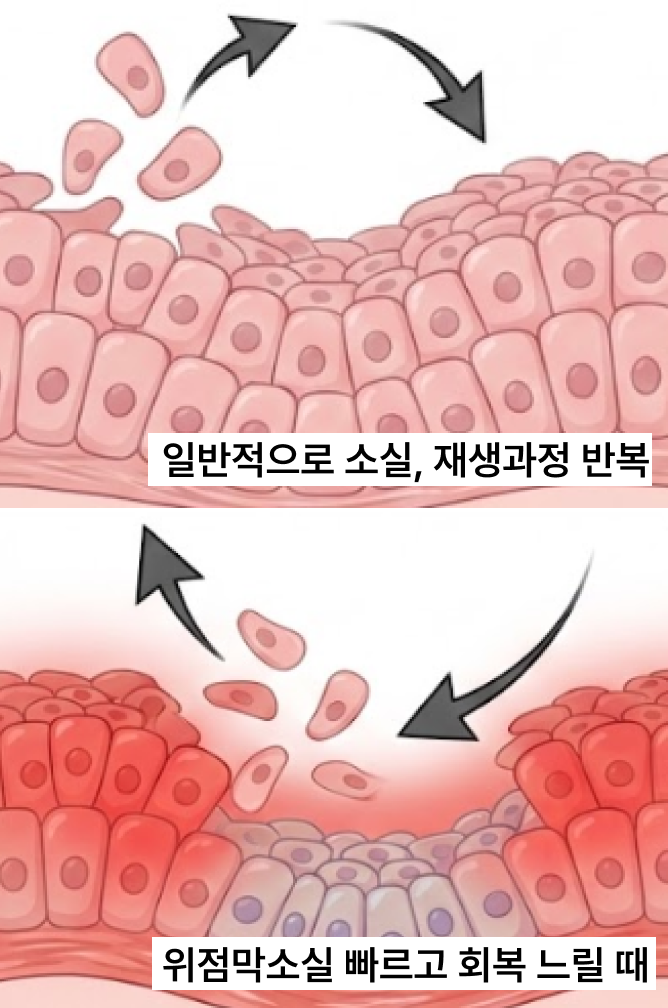 - 위점막 손상 완화, 조직재생