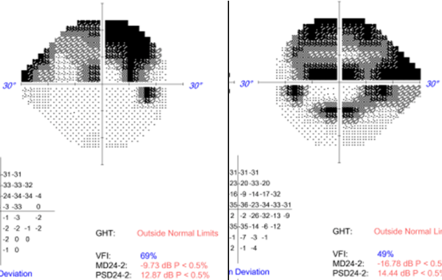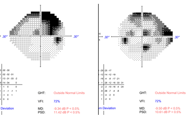 최초 검사 시  69%, 49%였던 시야가 72%로 많이 좋아짐
