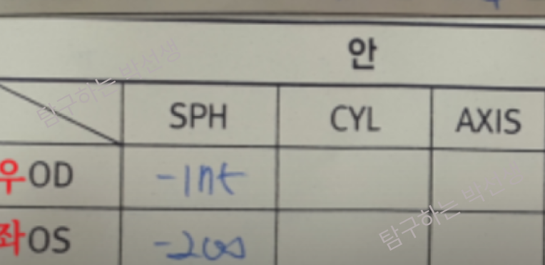 10년 넘게 -2.50 디옵터(시력 0.1 ~ 0.2) 였는데