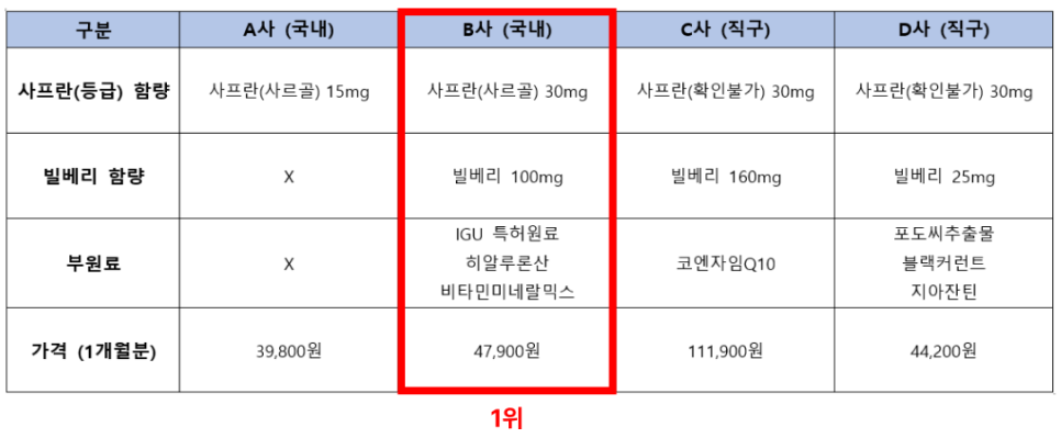 매우 싼편이라 저도 지금은 B사를 먹고 있는데요.
